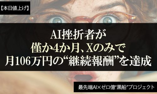 【事例】AI挫折者が月106万円の継続報酬(※本日値上げ)最先端AI×ゼロ億“黒船”プロジェクト